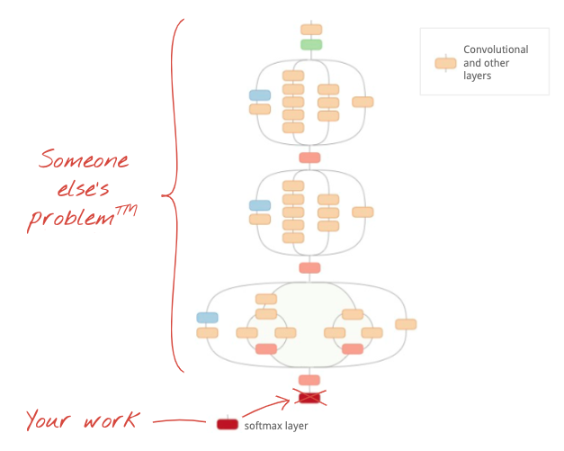 ao carregar o modelo no Keras. Isso permitirá que você adicione suas próprias camadas personalizadas para classificar as novas categorias.Adicione camadas personalizadas: Adicione camadas específicas para o seu problema de classificação. Normalmente, isso inclui uma camada de GlobalAveragePooling2D, seguida por uma camada densa com uma função de ativação softmax/sigmoid e o número de neuronios igual ao número de classes do novo problema.